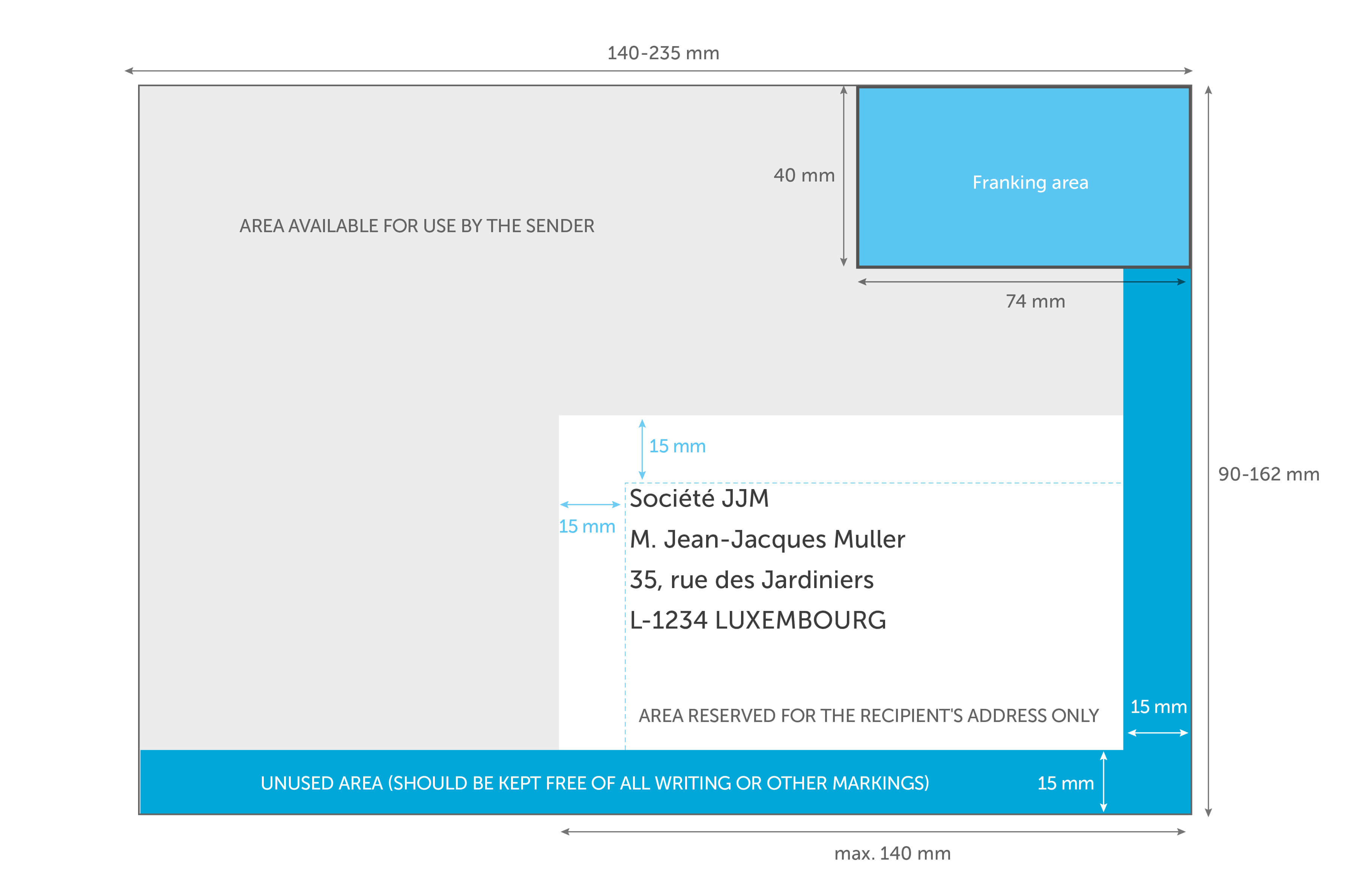 Proper return address format. Return Address on #10 Envelopes is not Correctly Placed and Cannot ... In all cases the delivery address printed in the correct location on the all envelopes selected. Size 9 placed the return address about 0.8" from the left edge or slightly more than the normal location. Size 10 places the return address 1.4" from the left edge of the envelope but does not allow for adjusting it closer to the edge. Guidance from Royal Mail regarding return address usage - Ciconi The most cost effective location for a return address is the top left corner of the envelope's face. The basic guidelines for the printed return address are: Less than 75mm from the right edge Extend no lower than 28mm from the top edge of the letter No closer than 12mm to the Delivery Address How to Write the Return Address on an Envelope | Bizfluent The U.S. Postal Service prefers the return address in the upper left corner of the envelope. When you address the envelope, turn it so the longest sides are along the top and bottom. The return address goes top left, the stamp goes in the top right corner, and the delivery address sits in the center. Large Letters and Packages What Is the Correct Format for Addresses When Mailing in the United ... The proper mailing address format is the same as the return address format, with the recipient's name, business name and address printed or typed in capital letters. If you do not address the mail piece to a specific individual, it is acceptable to address it using a title or department name.