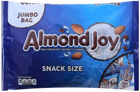 Almond Joy Coconut & Almond Chocolate Snack Size Candy Bars 3 oz, 5 pk $1.22 ($0.41/oz) Icon details Product description Take your taste buds on a tropical vacation! These snack sized bars of sweet coconut and crunchy almond chocolate candy bars are the perfect escape from your daily routine. Keep some for yourself or share these Almond Joy Candy Bars with family and friends.