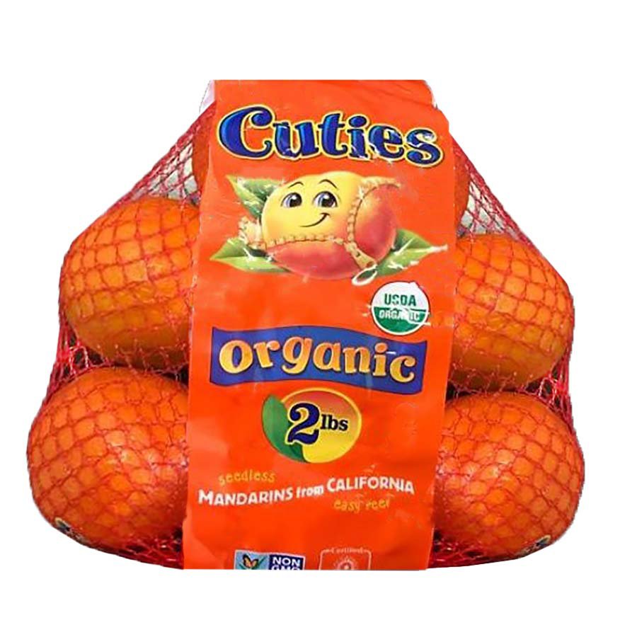 Seedless California Mandarins - Cuties Citrus Products 90 Calories 70% Vitamin C 12% Fiber 8% Potassium per serving. Full Nutrition Info. Sizes Available. 2 lb Bag . 3 lb Bag . 5 lb Bag . 5 lb Box . Easy-to-Peel . Little hands love to unwrap and enjoy Cuties. ...