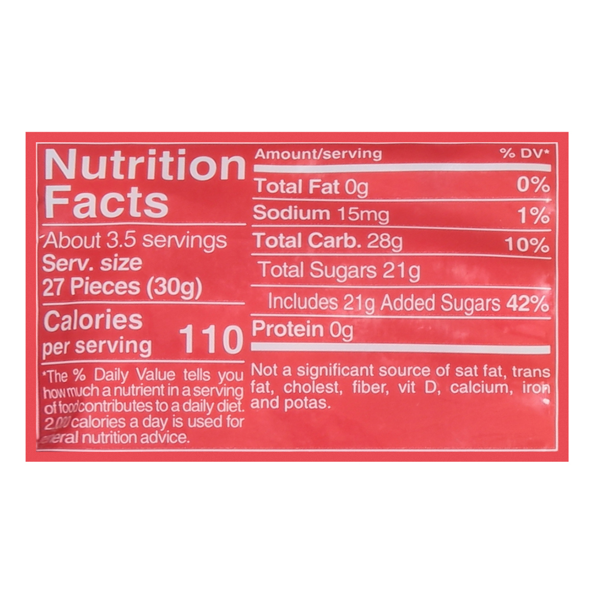 Jelly Belly Very Cherry Jelly Beans 3.5oz (99g) Manufacturer's Bag Nutrition: Serving Size 27 Pieces (30g). Serving Per Package About 3.5. Calories 110. Total Fat 0g DV 0%, Sodium 0mg DV 0%, Total Carbohydrate 27g DV 10%, Total ... Calories in Jellybeans and Nutrition Facts - FatSecret Jellybeans Nutrition Facts Serving Size 10 small Amount Per Serving Calories 41 % Daily Values* Total Fat 0.01g 0% Saturated Fat 0g 0% Trans Fat - Polyunsaturated Fat 0g Monounsaturated Fat 0g Cholesterol 0mg 0% Sodium 6mg 0% Total Carbohydrate 10.29g 4% Dietary Fiber 0g 0% Sugars 7.7g Protein 0g Vitamin D - Calcium 0mg 0% Iron 0.01mg 0% Potassium Calories in Jelly Belly Jelly Beans, 49 Flavors - Nutritional ... - Fitbit Jelly Beans, 49 Flavors from Jelly Belly Notes: 49 Flavors Additional Serving Size Recommendations Nutrition Facts Serving Size 38 grams Amount Per Serving Calories 140 Calories from Fat 0 % Daily Value * Total Fat 0g 0% Saturated Fat 0g 0% Trans Fat 0g Cholesterol 0mg 0% Sodium 15mg 1% Potassium 0mg 0% Total Carbohydrate 37g 12% Dietary Fiber Trouver les calories et les infos nutritionnelles de cet aliment : Jelly ... Popsicle Jelly Belly. Popsicle Jelly Belly, 1 Pop. Calories: 50 · Glucides: 13g · 50 ; Belly Flops Jelly Beans. Jelly Belly, 0.25 package. Calories: 130 · Glucides: ...