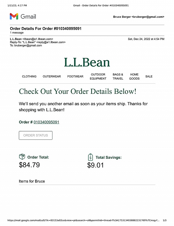 Ll bean returns address